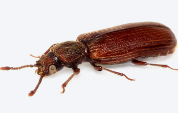 - Хлебный. Взрослые особи этого вида достигают длины до 3,8 мм. Они характеризуются слегка вытянутым тельцем, короткими усиками и внешним сходством с табачным жуком.